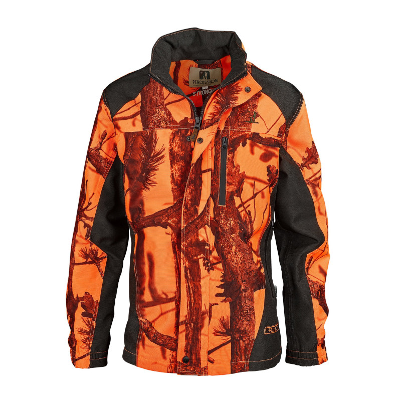 Vēja un ūdensnecaurlaidīgā Percussion vīriešu medību jaka GhostCamo ir izgatavota no īpaši izturīga Oxford 900 denjē ar laminētu membrānu. Lietainam laikam paredzētajai jakai ir ūdensizturīgas līmētas šuves un elpojoša tīklveida odere.