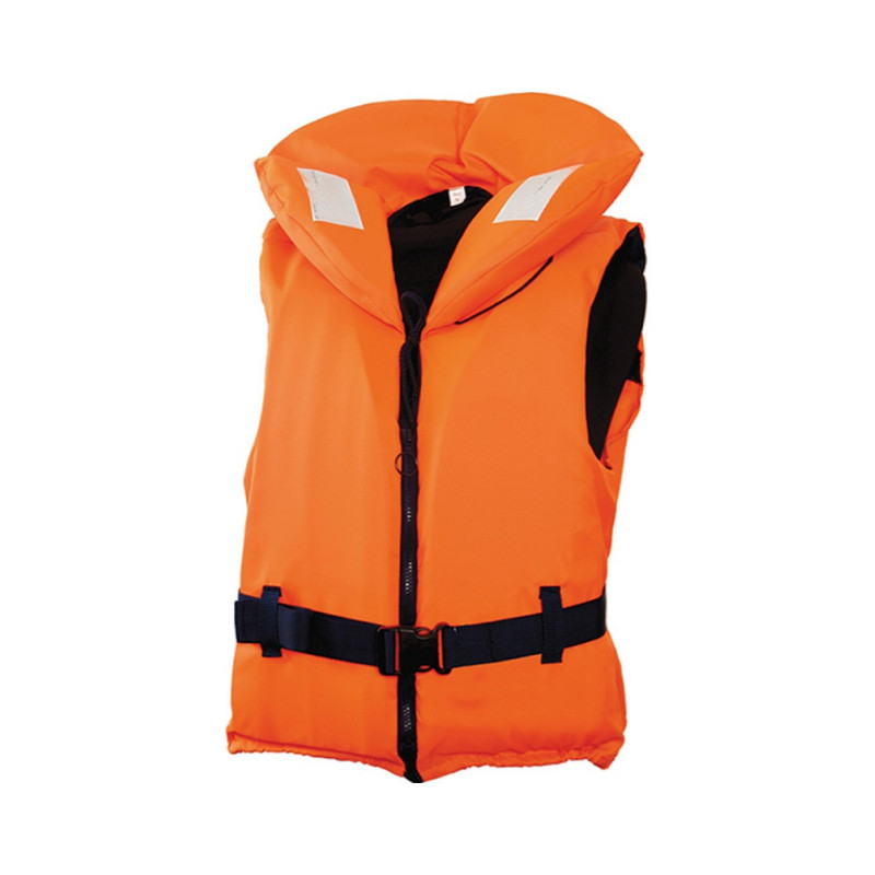 Glābšanas veste Norfin 100N. Liela apkakle papildus drošībai. Vestes priekšpusē rāvējslēdzējs, josta ar slēdzi Nexus, josta sastiprināšanai apakšdaļā, divas sasienamas auklas, svilpe un gaismu atstarojošas uzšuves.