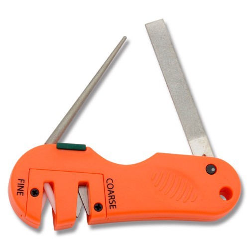 AccuSharp® 4-in-1 nažu un instrumentu asinātājs apvieno visas asināšanas vajadzības vienā kabatas izmēra ierīcē. Ierīcei ir rupji volframa karbīda asmeņi un smalki keramikas stieņi, kā arī ievelkams dimanta konusveida stienis dziļām rievām.