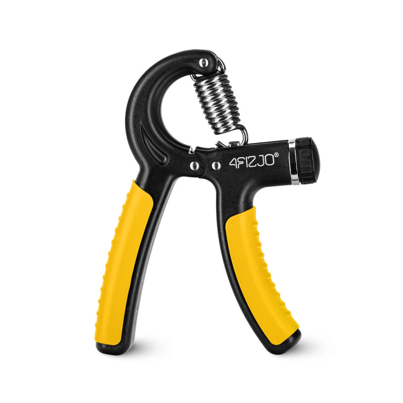 Zīmola 4FIZJO rokas trenažieris. Tā rokturi ir ergonomiski veidoti, lai mazie roku muskuļi netiktu pārslogoti un strādātu fizioloģiski. Rokturi ir aprīkoti ar neslīdošiem paliktņiem – tie nodrošina stingru satvērienu arī tad, ja treniņa laikā rokas ir nosvīdušas. Tam ir pretestības regulēšanas poga. Varat to pielāgot atkarībā no vajadzībām.
